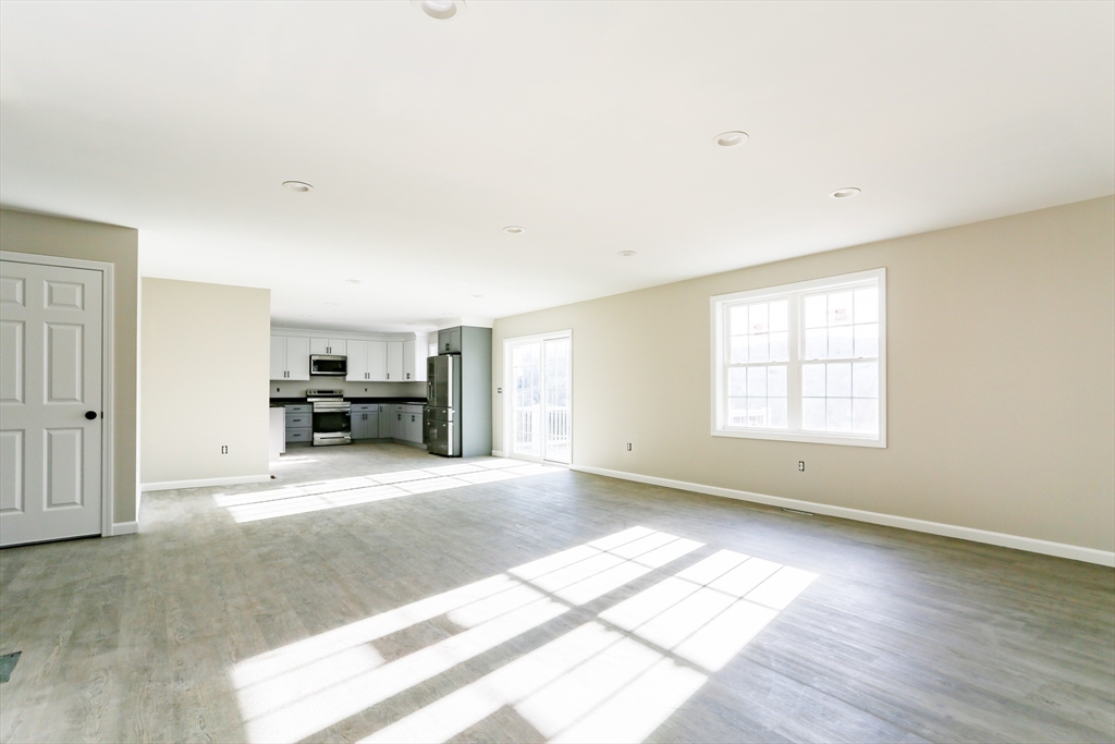 This impressive, newly built ranch offers easy single-level living with modern finishes throughout. A welcoming front porch and two-car garage lead to an open-concept layout featuring a fully applianced kitchen with granite countertops, dining area, and spacious living room ideal for entertaining. A slider opens to a 12x16 composite deck overlooking the backyard. The primary suite includes a full bath with double sinks and a walk-in closet, plus two additional bedrooms and a second full bath. A practical mudroom with washer and dryer hookups and ample storage closets adds everyday functionality. Central air provides added comfort during warmer months. The walkout basement features high ceilings and offers excellent potential for future finished space such as an ADU, home office, gym, or additional living area.