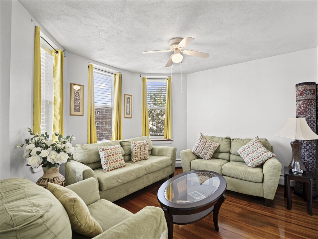 A bright and spacious 2-bed/1-bath apartment offers the perfect blend of your row brownstone building complete with modern comforts. This thoughtfully updated apartment features an open kitchen layout with new tile flooring complete with granite countertops, newer appliances, gas range, dishwasher and ample cabinet space — perfect for cooking and entertaining. Both bedrooms have closets in addition to built in shelves and hanging space for all your clothes storage needs. Refinished hardwood floors throughout. Coin op laundry in basement. Rear Deck. Top-floor living with abundant natural light! Unit 3 sits on the upper level of a classic Dorchester brownstone, offering extra privacy, elevated views, and beautifully sunlit rooms throughout the day. Close to many area amenities, train station, shopping parks, restaurants, and expressway. Available NOW!