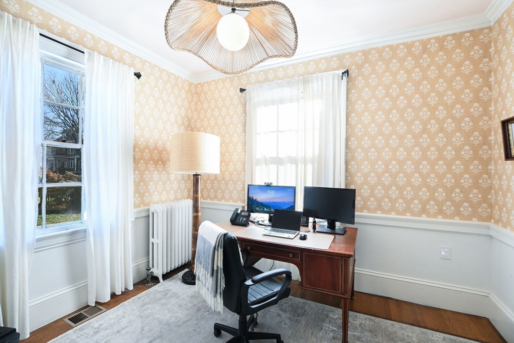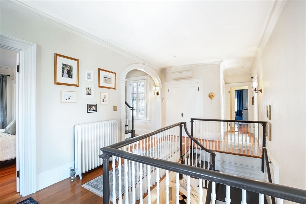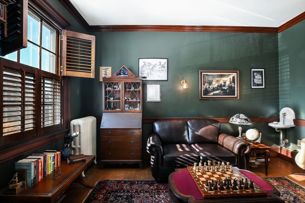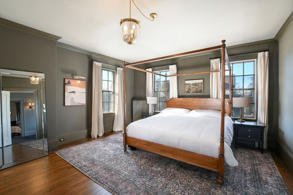 Welcome to 118 Cottage Street, a stunning 1916 Georgian Revival home in New Bedford’s prestigious County Street Historic District. Spanning nearly 5,000 square feet, this residence masterfully blends classic details with modern updates, featuring six bedrooms, hardwood floors, original millwork, & period details throughout. The inviting living room boasts built-ins & a fireplace, while the formal dining room opens to a private screened porch. The bright kitchen features an original pantry, skylight, & brick patio access. A home office with a separate entrance offers potential for an in-law suite. The second floor includes a primary suite plus four additional bedrooms, & a full bath. The third floor provides more living space with a sixth bedroom, a full bath, & a spacious living area—perfect for guests. Recent upgrades include central A/C, new electrical service, and elegant restoration choices throughout. Outside is a private backyard, a one-car garage, & an EV charging station.