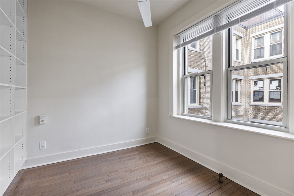 Available now! This spacious 1 bed/1 bath apartment features hardwood floors, high ceilings, and oversized bay windows that flood the space with natural light. The large living and dining area flows seamlessly into the bedroom, which offers floor to ceiling built-in shelving, as well as the brand new full bathroom. Ideally situated in an elevator building along the Back Bay Fens with on-site laundry and bike storage. Enjoy living just minutes from top-rated restaurants, shopping, parks, and Fenway Park, with easy access to the Longwood Medical area, Back Bay, MBTA bus & T stations, and major highways. Heat and hot water included! No pets please.