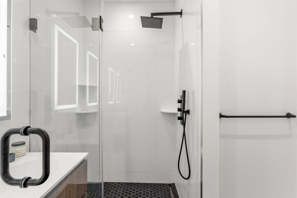 Enjoy luxury condo living at 75 on West. This impressive 2 bed residence was built in 2020 with striking architecture & high-end finishes. The complex is perched above Reunion Cafe at the corner of A St & W Broadway -- one of Southie's most prominent & bustling corners. Ideally located for city-dwellers, just one block from the Broadway T Stop & multiple highways with ease to Seaport, South End & Downtown. Floor-to-ceiling curved windows fill the space with natural light and showcase sweeping neighborhood views. The thoughtfully tailored open kitchen features custom cabinetry, under-cabinet lighting, waterfall quartz countertops & stainless steel appliances. The spa-like bath include sleek tiled shower, frameless glass enclosure, floating double vanity, and matte black fixtures. Building amenities include an elevator, shared gym, deeded storage & off-site garage parking. Additional features include keyless entry, intercom, surround sound, ductless mini splits & in unit w/d.