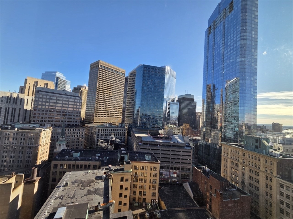 This sun-filled 2BR/2BA residence offers approximately 1,318 sq ft of modern living space with dramatic floor-to-ceiling glass walls in every room, bringing sweeping urban views directly into the home. The open-concept living, dining, and kitchen layout is ideal for both everyday living and entertaining. The primary bedroom features a walk-in closet and a private en-suite bath, and the unit includes the convenience of an in-unit washer and vented dryer. Located at 45 Province, a boutique luxury building offering full-service amenities including 24/7 concierge, heated indoor pool, fitness center, private dining room with chef’s kitchen, fireside library lounge, screening theater, and a stunning 33rd-floor roof deck. Exceptional location with a Walk Score of 99+. Valet garage parking available for rent.