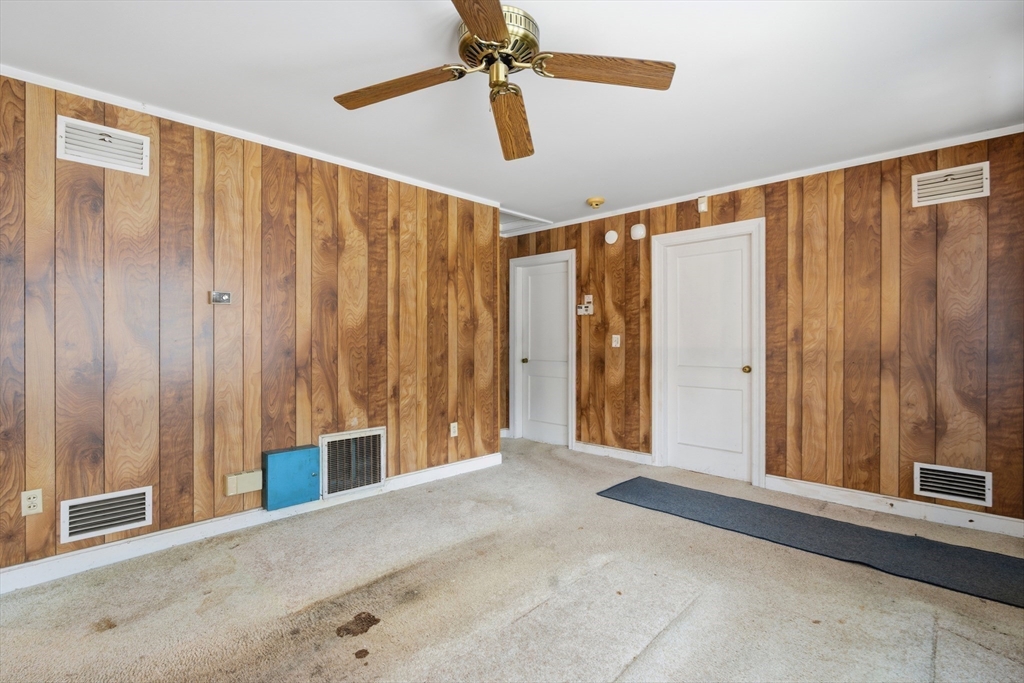 Cozy and well-laid-out ranch home in Fitchburg just waiting for your updates. The fireplaced living room features a bay window and classic wood paneling, while the cabinet-packed kitchen includes a convenient laundry closet. French doors open to the dining room with a bay window! Two good-sized bedrooms with ample closet space and a full bath complete the interior. Outside, enjoy a deck, patio, level yard with a storage shed, and plenty of off-street parking. Roof re-shingeled in Fall 2024. Convenient commuter location! Welcome Home!