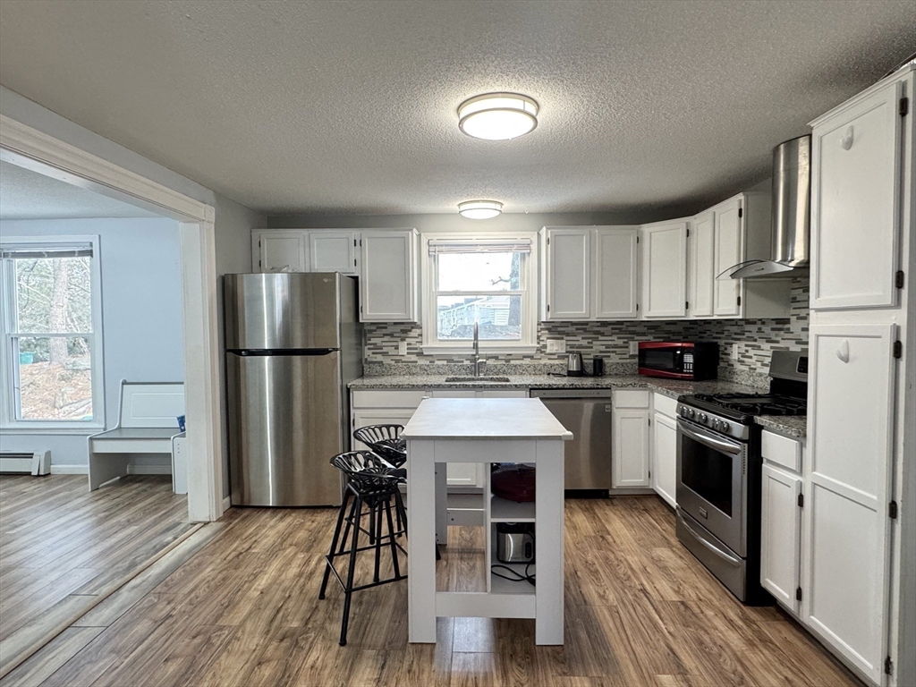 January 1 available! RARE opportunity to enjoy this gorgeous well-kept single family home on the Chelmsford/Lowell line! This 4 bedroom 2.5 bathroom offers a spacious layout, 3 levels of living starting with a stainless steel kitchen, and a sun-drenched living room on the first floor. The second floor features a primary suite bi-level loft, (ideal for an office, lounge, and guest bed) a private bathroom, exalted ceilings and skylight. Second floor also includes 3 large bedrooms and full bath with dual vanity. Bonus: large space on the lower level can be used as a den, gym, and/or office! Home offers hardwood throughout, tankless hot water, 2-car garage w/ a Tesla charger + private driveway can fit 2 additional cars, beautiful landscaped lawn and irrigation system. Ideally located in a private neighborhood, less than 1 mile to Rt 3 & Rt 495, steps to the bus, 2 miles to the commuter rail, and proximity to shopping, restaurants, Lowell General Hospital, and Umass.