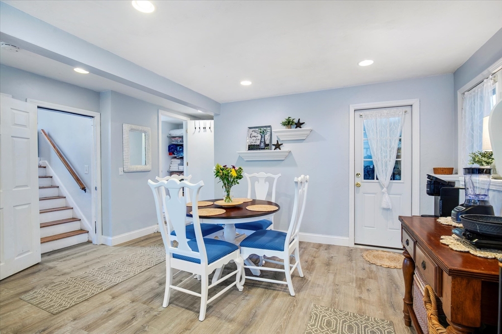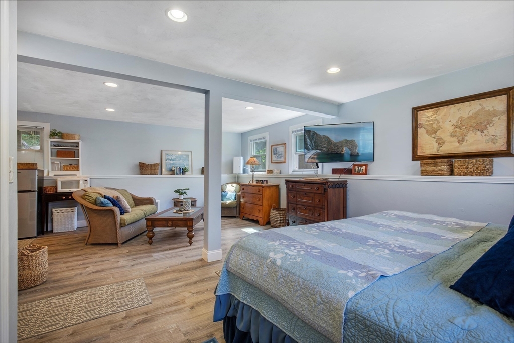 Walk to bustling Main St Hyannis to dine at one of the local restaurants or jog the boardwalk overlooking the water & fishing boats; or stay in & enjoy your private oasis where you can hear the ferry horn from your deck. This location promotes a lifestyle of peace & enjoyment. Mature landscaping was well thought out to include all seasons & includes a 10-zone irrigation system. The main living area has gleaming hardwood floors throughout as well as recessed lighting. The kitchen is meticulous w/newer custom cabinets, some glass cabinet doors, subway tile, quartz countertops & SS appliances. There is 2/3 bedrooms on this level as well as a spacious remodeled bathroom. The lower level is open concept with a private bath, high end vinyl flooring, another king-sized bedroom & separate entrance for extended family or friends. First level also includes garage and separate storage