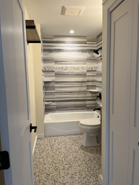 Located at 20 Gill St Unit B, in the charming coastal town of Hampton, New Hampshire, this attractive residential property awaits. Built in 2022, this 1st floor unit presents a unique opportunity to enjoy modern living in a desirable location. The kitchen is a culinary enthusiast's dream, featuring sleek shaker cabinets complemented by stunning stone countertops, and a stylish backsplash. The large kitchen island offers ample space for meal preparation and casual dining, while the kitchen bar provides the perfect spot to enjoy a morning coffee or evening cocktail. In the living room, the fireplace creates a warm and inviting atmosphere, perfect for relaxation and gatherings. Step outside and discover the welcoming porch and deck, both offering fantastic spaces to enjoy the outdoors. The property includes one full bathroom and one-half bathroom. With 1000 square feet of living area on a 6000 square foot lot, this residence offers a comfortable and stylish haven to enjoy.
