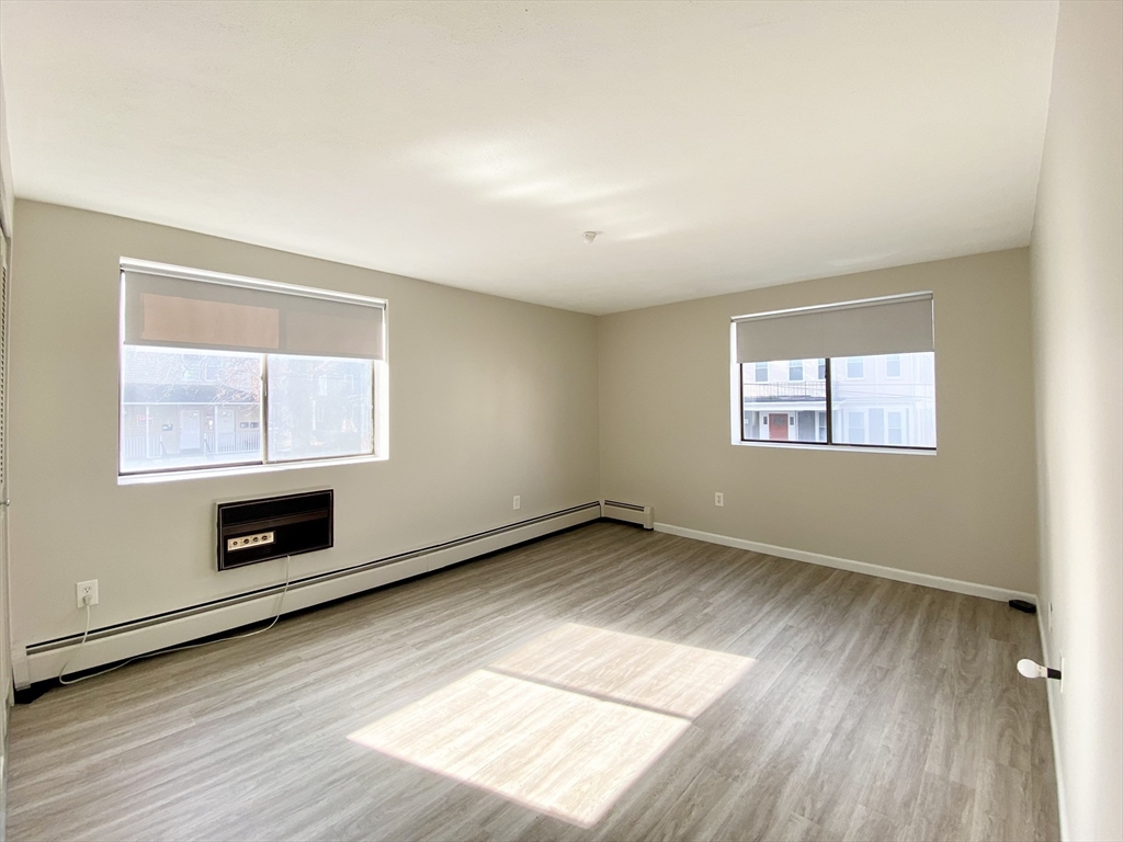 Spacious 2 bedroom 1 bath with heat, hot water and parking INCLUDED! Large living room and eat-in kitchen with stainless steel appliances. Ample size bedrooms with plenty of closet space. Wall A/C units in the living room and bedroom. Coin operated laundry in the basement with additional storage space. Shared outdoor patio. Just a 15 minutes from Malden Center, restaurants, grocery stores and the Malden Center T-Station. Verification of income, credit report and references required to apply. First and last month are required by lease signing. Sorry firm NO pet policy.