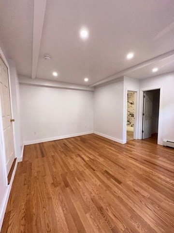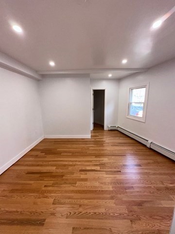 Impeccably renovated first-floor 2-bedroom, 2-bath residence offering modern elegance and functionality. The open-concept layout showcases brand-new hardwood floors and a designer kitchen featuring Summit navy blue shaker cabinetry, granite countertops, and stainless-steel appliances. An additional flexible space is ideal for a dining area or home office.The primary suite includes a spacious closet and a private ensuite bathroom with heated floors. Additional highlights include off-street parking and available laundry services. Conveniently located near Hyde Park Ave with easy access to public transportation, Forest Hills T Station, shopping, dining, and major commuter routes ideal for those seeking comfort and accessibility.