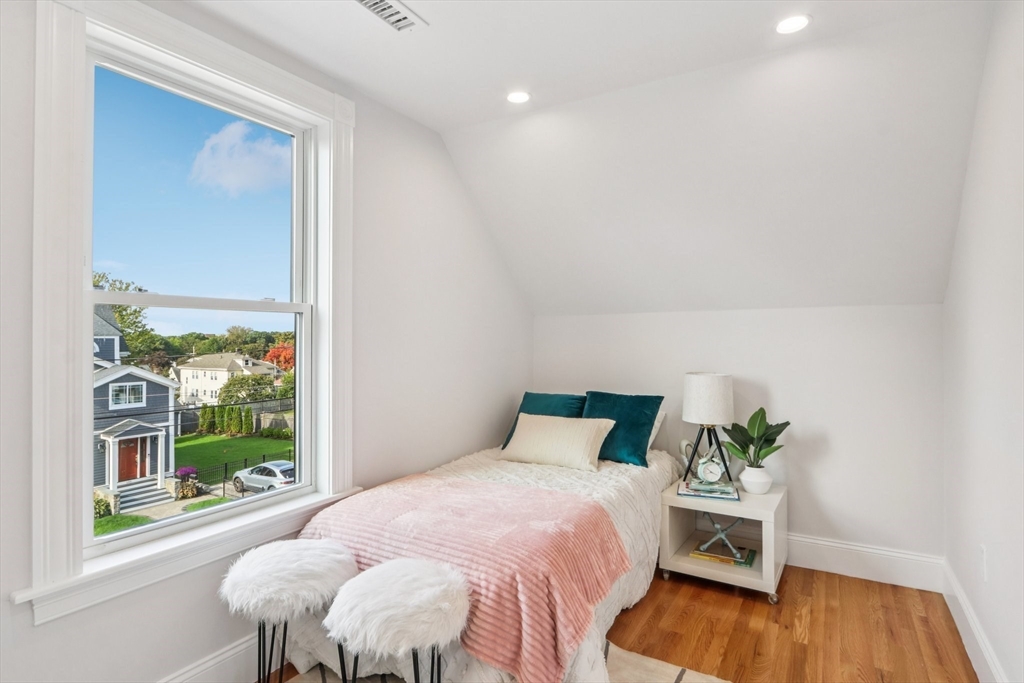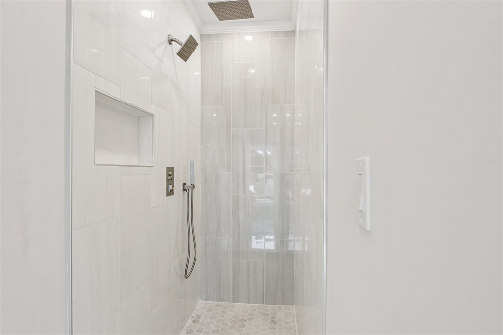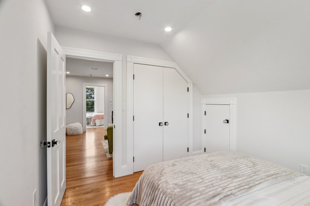 Welcome to 183 Temple Street in West Roxbury—beautifully renovated and restored to its original charm. This impressive 10-room, 5-bedroom, 3.5-bath home offers timeless character blended with modern luxury across three levels. The main floor features a welcoming foyer with open staircase, elegant living room, powder room, and a chef’s kitchen w/ high-end appliances, custom cabinetry, quartz countertops and backsplash, oversized island, high ceilings, and open flow to the dining room. The second level includes three bedrooms, laundry, and a spacious primary suite with dual walk-in closets and a spa-like bath with double vanity, soaking tub, and walk-in shower. The third floor offers two additional bedrooms, a full bath, and flexible bonus space. Exterior updates include new siding, windows, roof, driveway, deck, and a large private fenced yard. Unfinished basement offers storage or expansion potential. Convenient to Centre Street shops, dining, and commuter rail. Open Sat & Sun 11:30-1