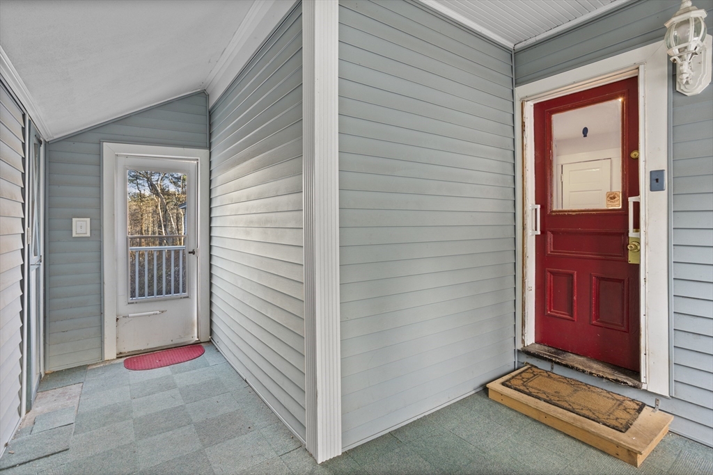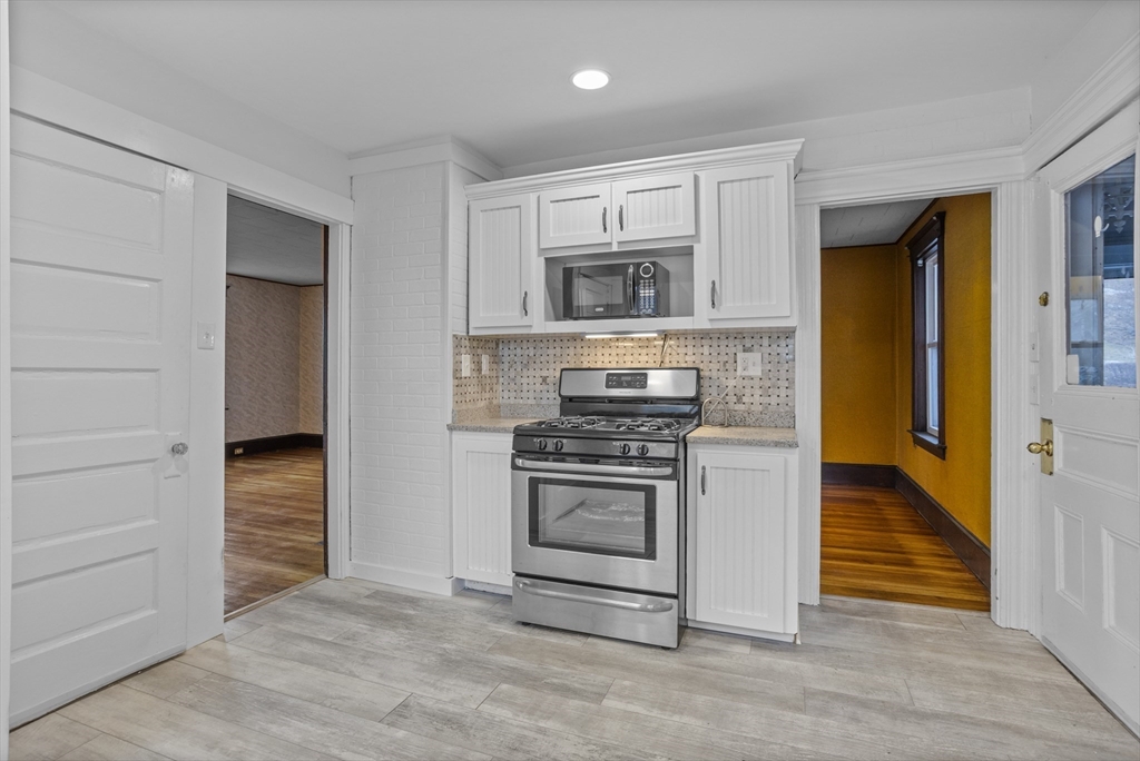 This charming Westford home features an updated white kitchen with granite counters, marble backsplash and stainless steel appliances. Additional features include the gas range, vinyl flooring and pantry storage. Newly refinished wood floors shine throughout the living room, dining room, and bedrooms. Generous ceiling heights, comfortable room sizes, and an easy flow enhance everyday living. Character-rich details include a built-in dining room hutch, a kitchen alcove with arched doorway showcasing the sink and fridge, and substantial baseboards and trim. The updated full bath provides great storage in the oversized linen closet. Low maintenance vinyl windows and siding and a composite deck with vinyl railings offer easy upkeep. A breezeway/mudroom provides a seamless transition to the kitchen from front and back yards as well as the garage. The bright and inviting front sun porch is the perfect spot for relaxing. Westford offers great schools, beaches and over 75 miles of trails.