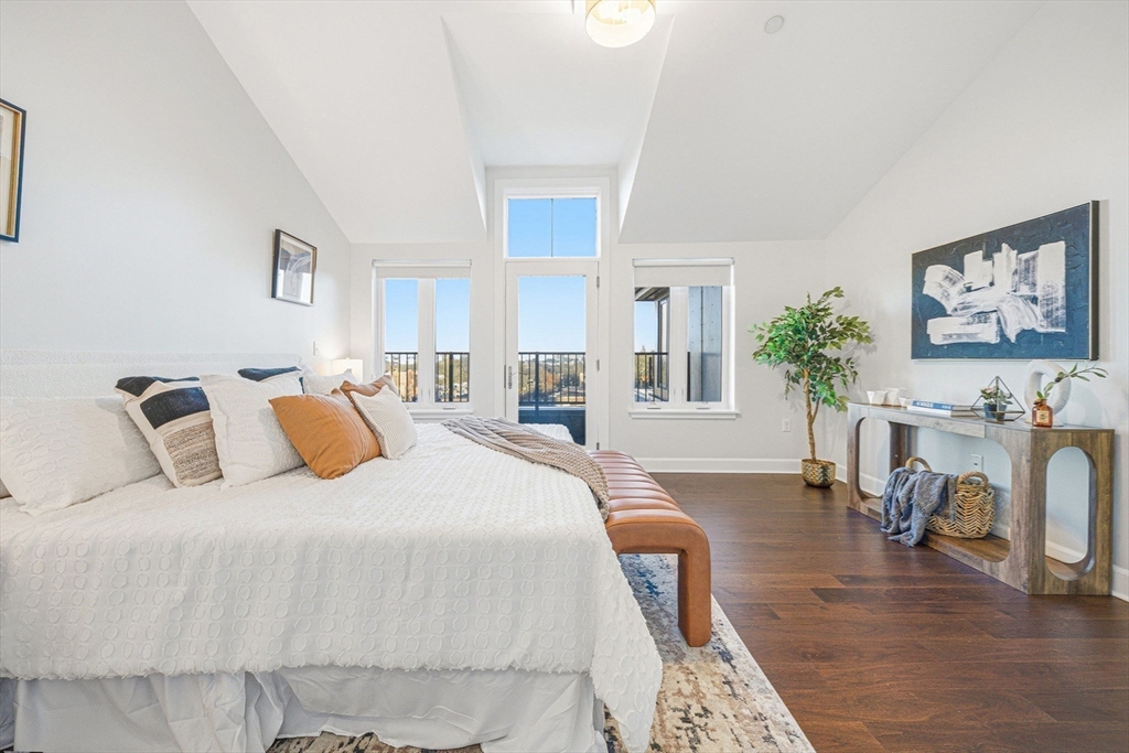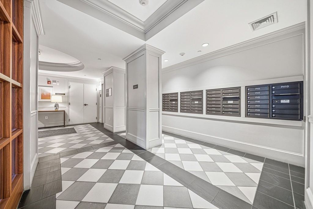 OH 1/4 Sun 1-3pm. A rare opportunity to own a distinguished builder penthouse at The Lancaster, Brighton’s premier elevator building. This majestic southeast corner residence is wrapped by an expansive private balcony with sweeping Boston skyline view. The refined 2-bedroom, 2-bath home features vaulted ceilings and upgraded hardwood floors throughout, a gas fireplace, central HVAC, and in-unit laundry. Sun-filled living and dining spaces flow seamlessly to the wraparound deck, ideal for entertaining. The kitchen is impeccably appointed with custom cabinetry, granite countertops, and stainless Bosch appliances with gas cooking and professional venting. Additional highlights include abundant spacious closets, two deeded single garage parking spaces, and deeded storage. Inspired by English Jacobean Architecture, The Lancaster offers boutique hotel–level amenities including an elegant lobby, heated garage, residents’ club room, fitness and yoga studio, and a secluded courtyard patio.