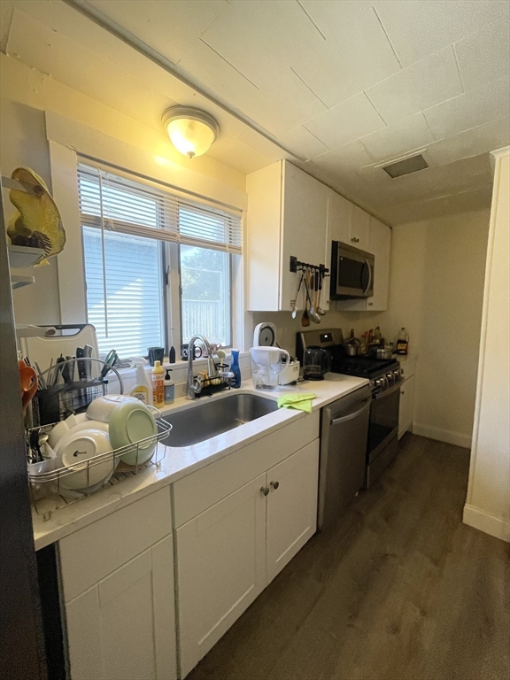 TUFTS University! June 1 move in. 4 bedroom with great proximity to campus. Spacious rooms. All can support a bed, dresser and desk. Second floor unit gets great natural light. Updated large kitchen with space for a kitchen table. Private deck off kitchen. Building laundry. Professionally managed building. Bonus porch room off one of the bedrooms for an additional office space or second bedroom.