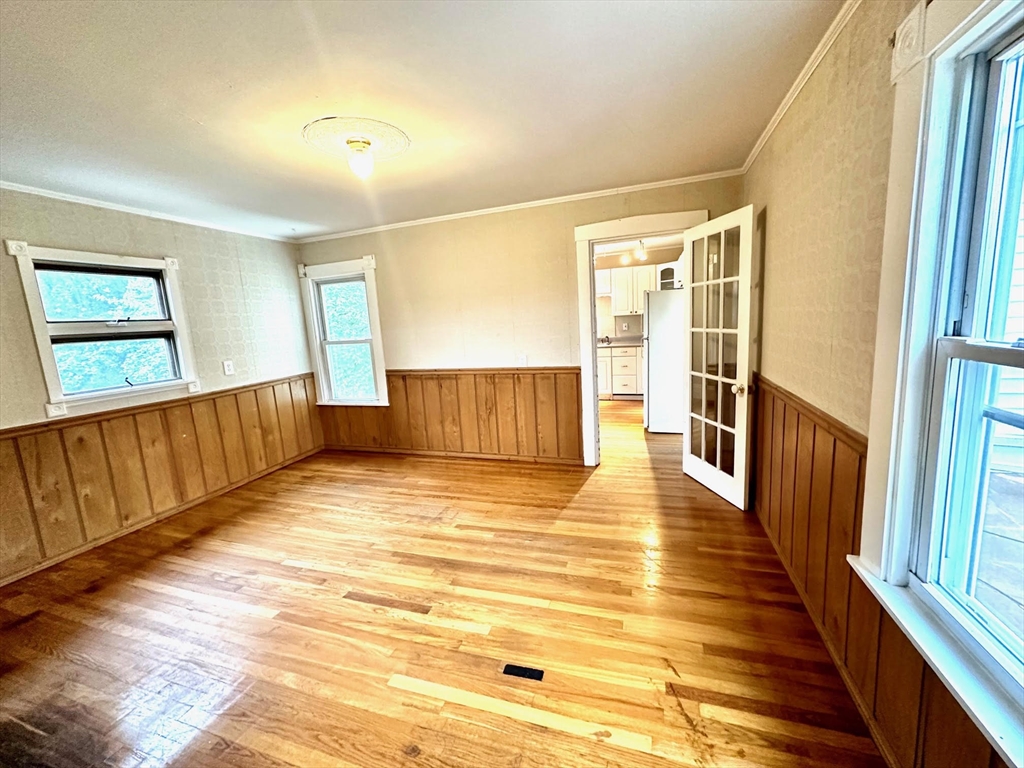 Natick Center area 2nd floor 2 bed 1 bath rental. This is 1 apartment in a 3 apartment house (non owner occupied). PET FRIENDLY & IN UNIT LAUNDRY ROOM (machines there now can be used but are maintained by tenant). Unit has an eat-in kitchen w/ electric oven, new stainless steel fridge (not the fridge that is in the photos), dishwasher, disposal, living room, 2 bedrooms (primary bedroom has a walk-in closet). There is no tub in the bath, just a shower. Unit has hardwood floors. Driveway parking for 2 cars. There is a large back yard that can be used and is shared with the 2 other apartments. Tenant pays gas for heating and electricity (Eversource is the company for both). 1st, last and 1 month security deposit due. Great location close to shops, restaurants and Natick Common. Less than one half mile to the Natick Center Commuter Rail. Pictures from prior to current tenant moving in.