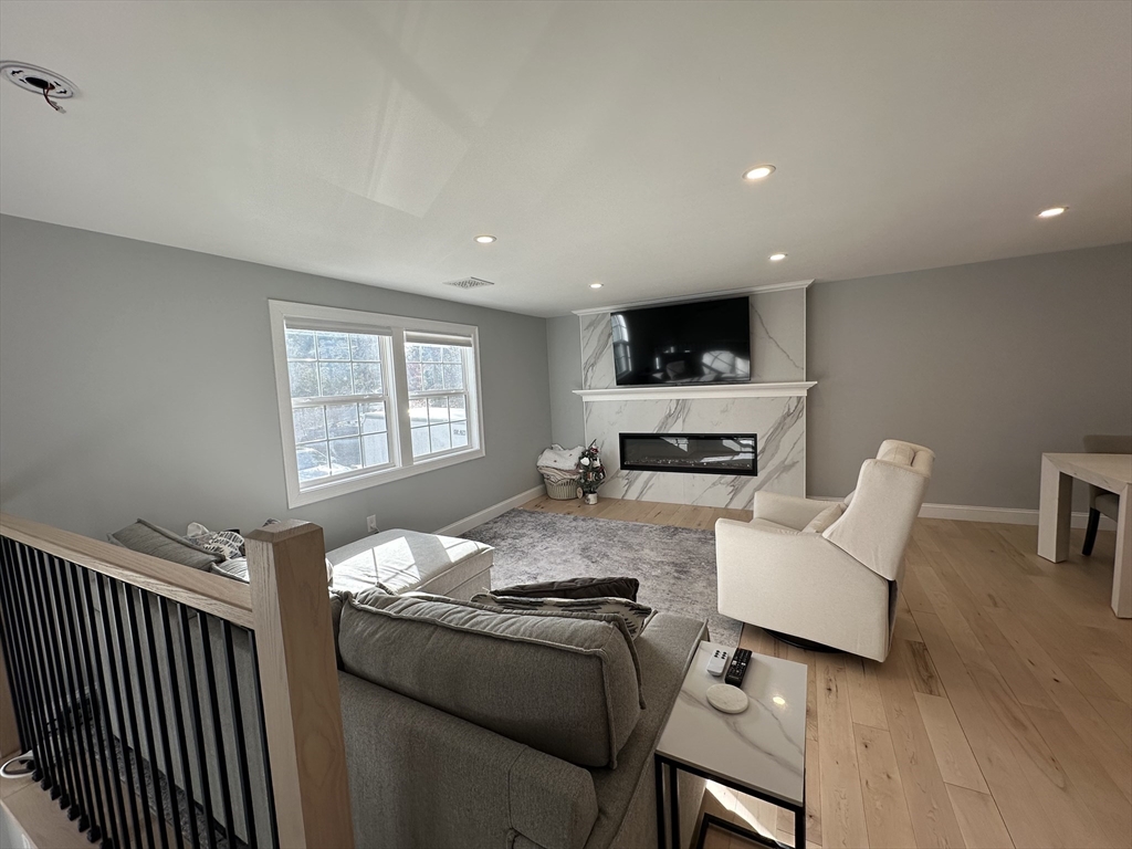 This beautifully renovated split-level single-family home offers flexible living space with 4–5 bed and modern finishes throughout. The main level features three beds, including a master bed with a private half bath, as well as a full hallway bath. The updated kitchen boasts quartz countertops, elegant tile work, brand-new appliances, hardwood flooring, and a cozy electric fireplace—ideal for both everyday living and entertaining. An all-season sunroom on the main level features cathedral ceilings and abundant light, perfect as an office/playroom/gym/family room. The lower level provides a spacious family room, two additional bedrooms or home offices, a full bathroom, and a dedicated laundry area, offering excellent versatility and comfort. Additional highlights include new windows, central air conditioning, and a new gas furnace. Water and sewer are included in the rent. The yard will be reseeded in the spring. Small pets welcome. Yard and snow removal is tenant responsibility.
