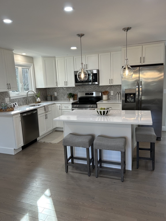 Beautifully remodeled 4-bedroom, 2-bath Colonial set in a peaceful country setting on a quiet dead-end street. This home features a split-level entry that welcomes you into a bright and inviting layout. The upper level offers two spacious bedrooms, a full bath with a tiled shower, a dining area, a large living room, and a stunning kitchen. Hardwood and tile floors run throughout, adding warmth and style. Sliding doors off the dining area lead to a rear deck, perfect for relaxing or entertaining. The lower level provides additional living space with two generously sized bedrooms, a second full bathroom, a comfortable family room, and a washer and dryer area. Located in Marion, approximately 15 miles from Cape Cod and just one hour from Boston, this home offers both tranquility and convenience. Come take a look—you won’t be disappointed.