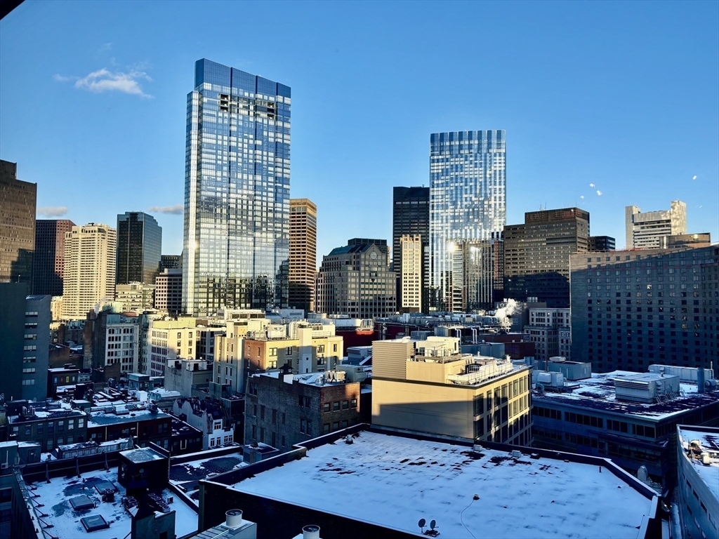WELCOME TO SUITE 19D! Let the morning sun greet you in this exquisite one bedroom east facing corner unit with city views. Space, luxury, comfort and convenience welcome you home every day. Tastefully appointed high end finishes throughout include a Bertazzoni gas range and microwave, Fisher and Paykel refrigerator, high gloss white cabinetry, stunning waterfall countertops plus a breakfast bar perfect for morning coffee or evening entertaining. Flooded with natural light, the open layout living/dining area is an oasis of its own. Electric blinds let you set the mood for morning sun or evening relaxation. The bedroom, large enough to accommodate a king size bed, boasts a stylish walk-in closet and tiled bath/shower with custom vanity. Tremont on the Common is a full service luxury building with luxurious lobby, state of the art fitness center, residents lounge and heated seasonal pool. Convenience abounds with downtown city living at its best! This location can't be beat!