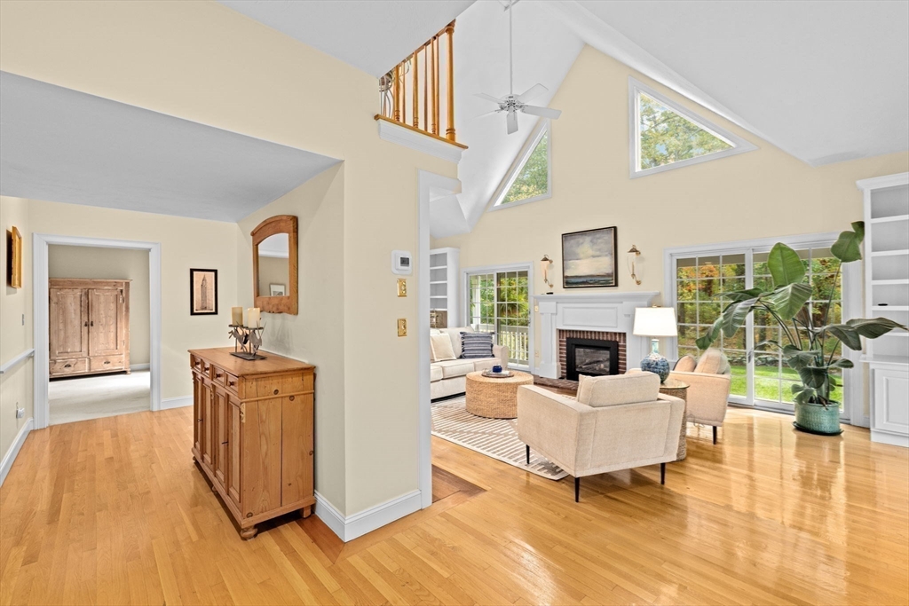 Merritt Woods offers an exceptional location near North Scituate Village and just minutes from Minot Beach. This exclusive 16-residence enclave features homes connected only by generous two-car garages and set along a beautifully landscaped, wooded cul-de-sac—offering a level of privacy rarely found in townhome living. 9 Forest Lane lives like a single-family home with the ease of a condominium. Boasting over 3,400 sq. ft., it offers three ensuite bedrooms—one conveniently on the first floor—plus a half bath. The main level is ideal for entertaining, showcasing a vaulted living room with sliders to the tranquil, wooded grounds, a spacious dining area, and a charming screened porch that feels like a private retreat—perfect for morning coffee or evening gatherings. A cozy family room and a finished lower level for media or recreation complete this beautifully appointed home.