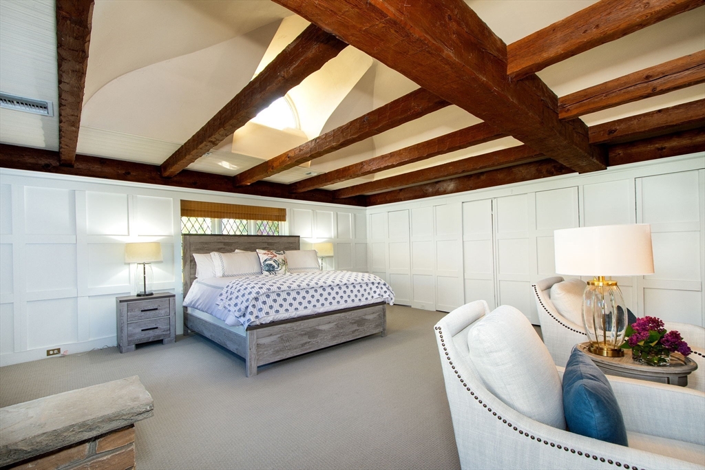 August 2026 Rental – Enchanting Coastal Retreat Near Two Private Beaches! This enchanting stone & wood ranch-style home offers beautiful ocean views & short walk to private beaches. Recently renovated & newly furnished throughout, the home blends coastal charm with modern comfort. The home features four bedrooms and four full baths, including a cozy family room & an expansive great room. The large kitchen & dining room are ideal for entertaining. The primary suite includes a king bed & a spacious bath with soaking tub & shower. A second primary suite on the upper level offers a king bed & bath. The third bedroom, located in the charming Chapel Room, features two queen beds with twin trundles, built-in twin bunks & full bath. The fourth bedroom includes a twin bed with trundle & full bath.Outdoor living shines in the private courtyard, perfect for entertaining, with dining for twelve, a gas fire pit, Adirondack chairs, chaise lounges, and a large grill. Enjoy Summer 2026 by the beach!