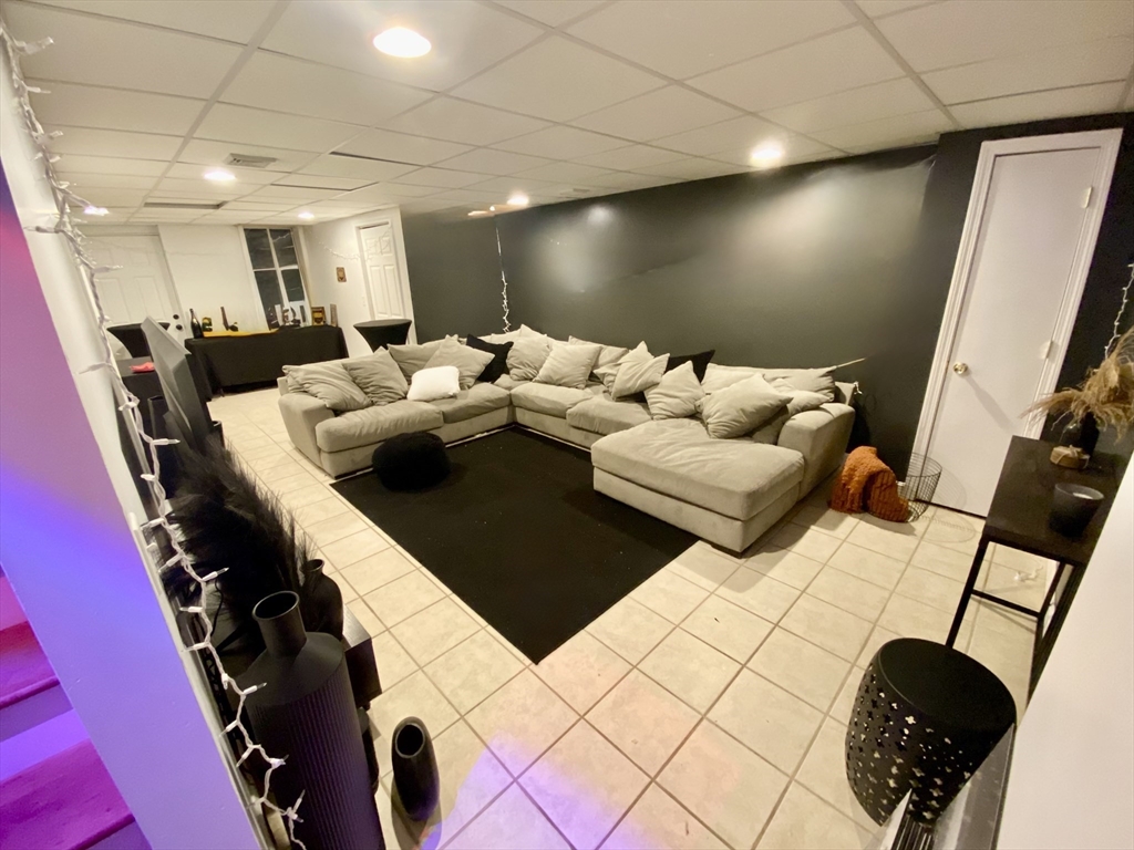 Welcome to the Highlands! This home combines comfort and convenience, nestled in a highly desirable neighborhood with easy access to schools, shopping, restaurants & just moments from the highway. Step inside to discover three levels of living space featuring a U-shaped kitchen equipped with plenty of cabinet space, stainless steel appliances, a gas stove, and sliding doors that lead to a 10x10 deck, perfect for entertaining. The cozy living room is filled with natural sunlight, boasts hardwood floors, and features a gas fireplace, creating an ideal atmosphere for relaxation and a convenient half bath perfect for visitors. Upstairs, you'll find spacious bedrooms with ample closet space, along with a full bath that includes a double vanity sink and a linen closet. Additional features include a finished basement, a high-efficiency heating/cooling system, ensuring year-round comfort.