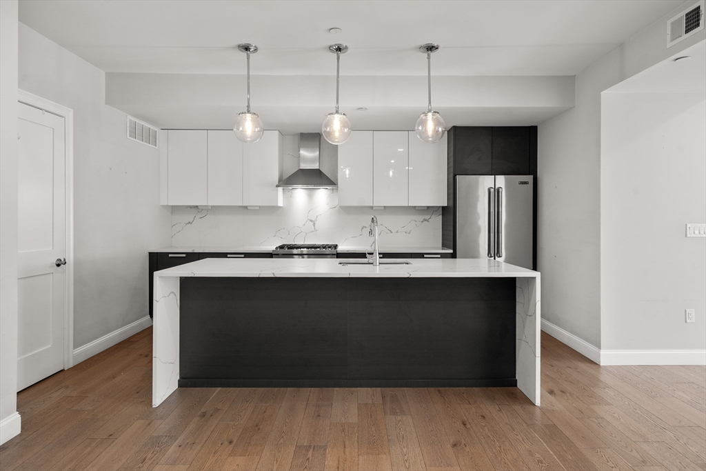 Located in Savin Hill this eloquently designed building offers elevator service, heated below grade parking, secure video access, bike room. This home offers 2 bedrooms, 2 bathrooms with approx. 1,247 SF with an open concept living space. The kitchen features Italian made cabinets, Statuario Venato quartz with waterfall islands, under cabinet lighting, and a JennAir appliance package. The primary suites features a large walk in closet and an en-suite bath with radiant heat and double vanities. This unit also has a walk-out patio off the living space with a large private fenced in yard and 2 garage parking spaces! Available for rent now!