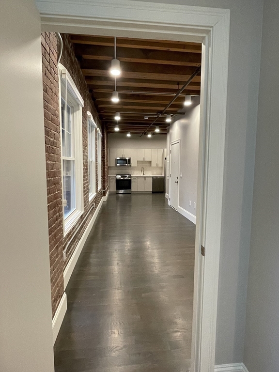Welcome to 281 Franklin Street, a historic Downtown building reimagined for modern living. Unit 402 is a stylish studio featuring soaring ceilings, exposed brick and beams, and an open layout that maximizes space and natural light. The contemporary kitchen is equipped with sleek cabinetry and premium appliances, including a gas oven and range, microwave, dishwasher, garbage disposal, and a refrigerator with a bottom freezer. The spacious bathroom offers a spa-like feel with a rain shower head and dual sinks. Storage is exceptionally well designed for a studio, with two closets—one across from the refrigerator ideal for a pantry, and another by the bathroom for clothing and extra storage. A washer and dryer are included in the unit for added convenience. Ideally located near top restaurants, shops, and public transit, this unit offers the best of city living in a character-filled setting. Available now for $2,890/month (utilities excluded), with one month of free rent.