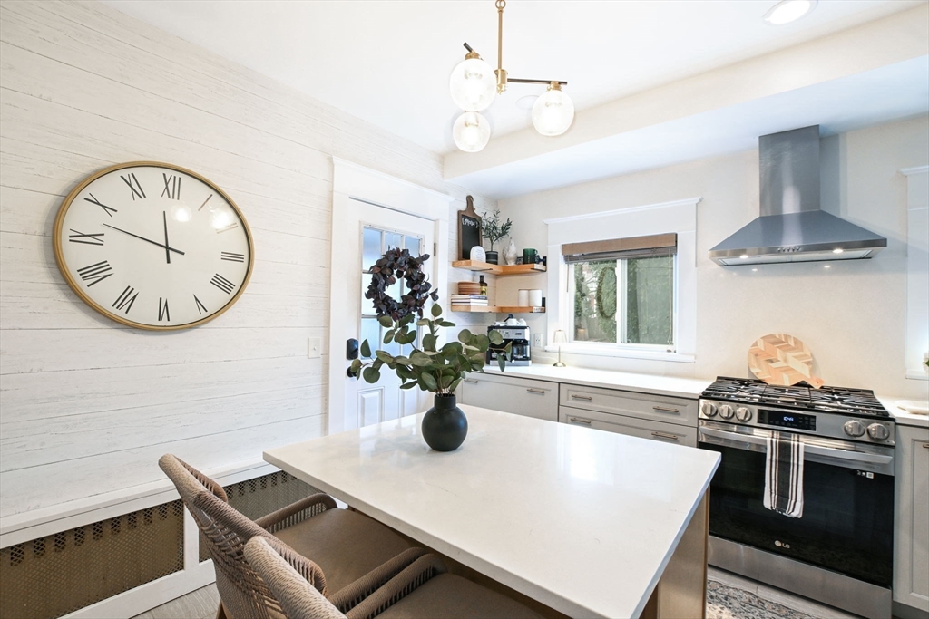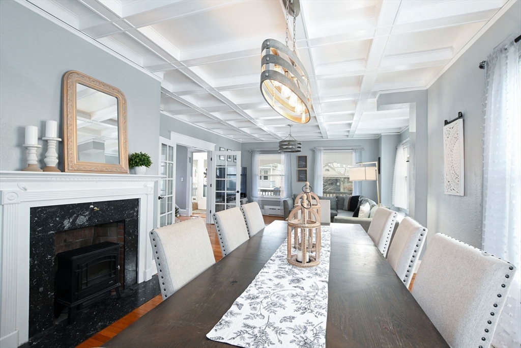 Discover the timeless charm of 265 Maple Street. Just blocks from Buttonwood Park & located in the Winslow School District, this four bedroom, two full bath property seamlessly blends vintage charm with modern convenience. The open living & dining areas feature eye-catching coffered ceilings that showcase the residence’s exceptional craftsmanship. The 2022-renovated kitchen is a chef's dream with a spacious island, stone countertops, & custom cabinetry with an abundance of storage. Upstairs, a southerly facing sunroom connects two bedrooms creating a serene retreat, while a full walk-up attic offers more possibilities. The home also features a newer roof replaced in 2023, renovated first-floor full bath, a fenced backyard with a pergola-shaded dining area, & a two-stall garage outfitted with tool cabinets. Making the property even more special is that it is believed to be a rare 1914 Sears Modern Home No. 163. Come experience this one-of-a-kind gem!