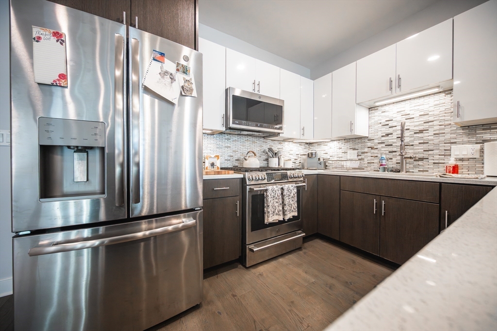 A stunning 2-bedroom, 2-bath condominium in the center of revamped Quincy Center, offering modern luxury and convenience. Constructed in 2018, this bright and airy home boasts an open floor plan with expansive windows, soaring ceilings, and a sleek kitchen outfitted with two toned cabinets, stainless steel appliances, and a designer backsplash. The spacious primary bedroom includes a walk-in closet and a spa-inspired en-suite bath featuring a double vanity, a soaking tub, and a separate glass-enclosed shower. Additional amenities include in-unit laundry and deeded GARAGE parking. Located in Cliveden Place, a professionally managed, secure elevator building. Just moments from the Quincy Center T station, dining, shopping, parks, and major routes including I-93—perfect for commuters and city living enthusiasts.