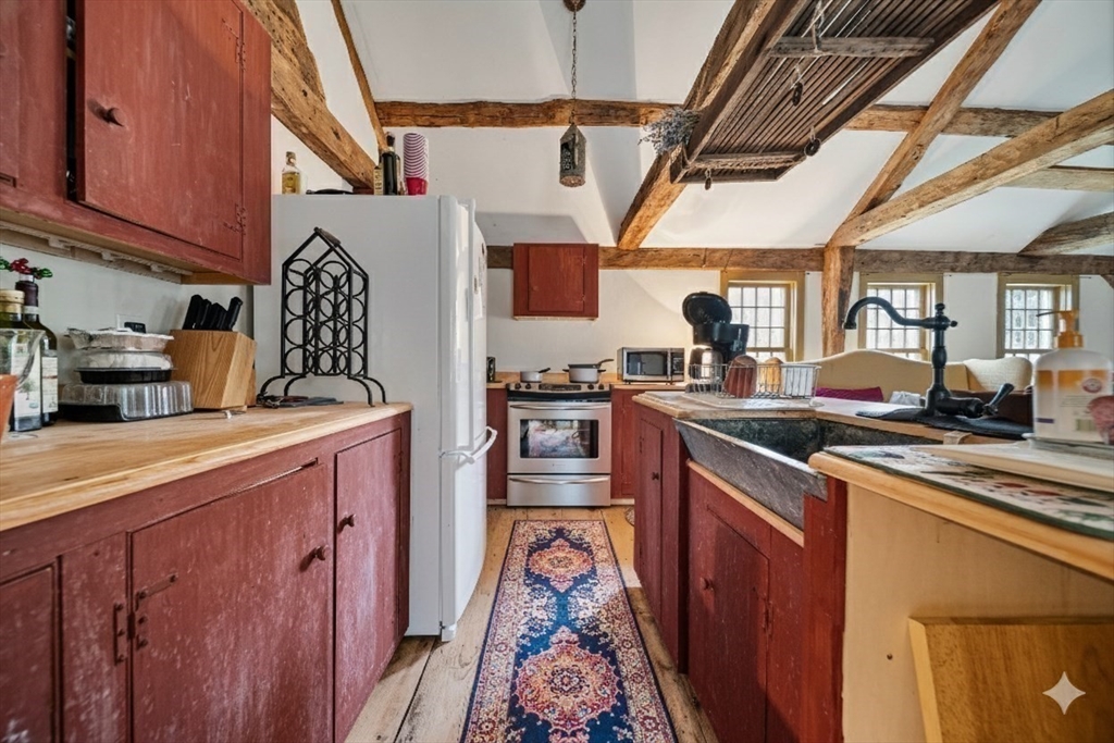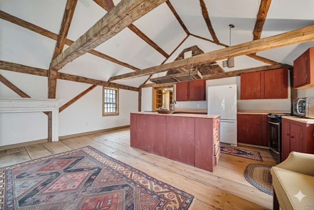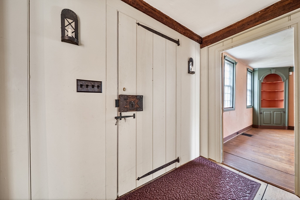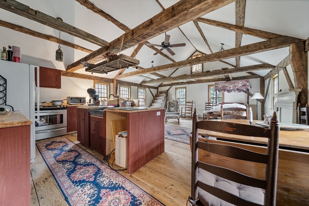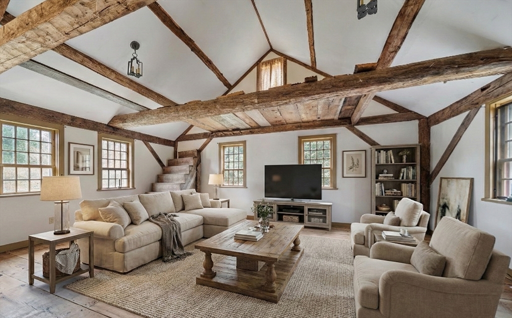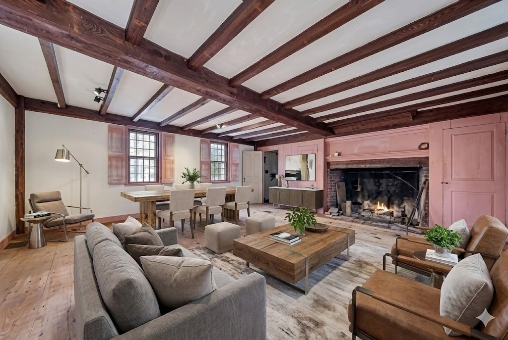 Steeped in New England history and set in a beautiful, stone walled, prestigious landscape, 7 Lower Green is a rare 1728 antique home, originally the Seddon Tavern serving early settlers. Timeless character abounds with four fireplaces, including a magnificent walk-in, wide pine floors, large center chimney, and two gracious front rooms filled with warmth and patina. The expansive great room, dating to 1780, is a relocated barn that was reassembled here, creating a truly one-of-a-kind space. The home is updated with central air and a security system, plus a coveted 2 car garage. It blends historic charm with modern comfort. Title V approved for a two-bedroom septic. Just minutes from the Parker River, boat ramp, and marina as well as an historic one room school house. The property is further enhanced by SPNEA covenants, ensuring lasting natural beauty and serenity. Much of the home was restored in the 1940's giving you the best of both worlds... history, charm, yet updates!