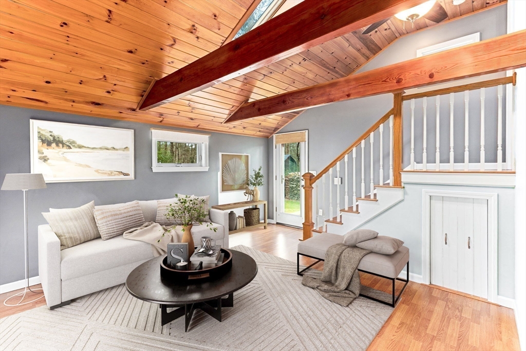 Charming, contemporary style home with a lovely yard in the much desired town of Norton. This well maintained multi-level was completely renovated in 2009. Open concept living room with tongue and groove cathedral ceiling, wood beams and skylight flows nicely into the good sized eat-in kitchen with cozy wood stove, convenient pantry and stainless steel appliances. Off the kitchen is a private deck which overlooks the beautiful front lawn. There are two comfortable bedrooms in this home and a large well appointed bathroom which is located on the main level. Features include a 200 amp. electrical panel, 2x6 construction on exterior walls and easy maintenance vinyl siding. Recent updates are 3-zone mini-split 2021, water heater 2022 and washer/dryer combo 2025. ** Seller to convey approx. two years of firewood with the sale. Easy highway access to Rte. 495 and Rte. 95. Welcome home to 11 Acre Rd., Norton!