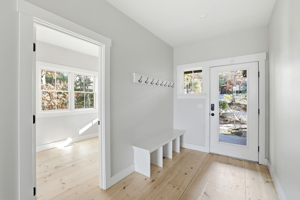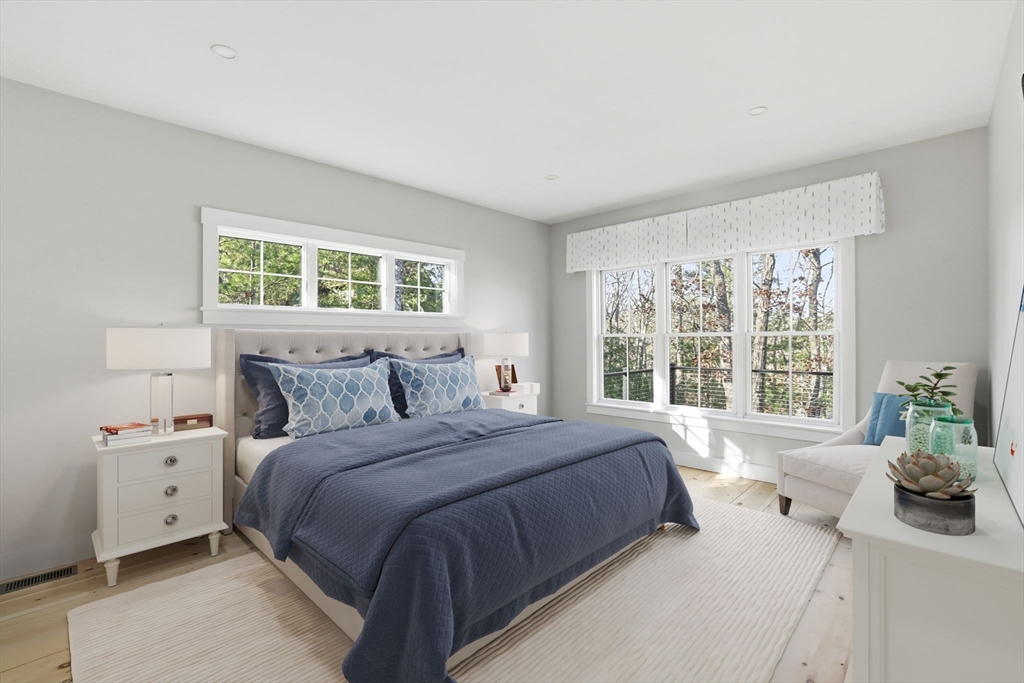 Custom built, Arts & Crafts-styled home from a premier builder, set in a very unique and private Pinehills neighborhood. Nestled on a hillside with 18 similarly themed homes tucked into private, wooded lots on a 'one-way in, one-way out' hillside. The chef’s kitchen features a walk-in pantry, high-end appliances, and an open-concept layout that flows seamlessly into the dining and living areas.The main-floor primary suite includes an ensuite bath with a large shower and soaking tub. Also on the main level are a home office, half bath, and laundry room, with access to a three-season room and a spacious back deck—perfect for relaxing or entertaining.The finished walk out lower level provides a comfortable family room, full bath, bonus room (ideal as an extra bedroom), and space for a home gym. The 2nd floor has 2 spacious bedrooms and a beautiful full bathroom. This move-in-ready home combines privacy, functionality and style, while offering full access to Pinehills amenities.
