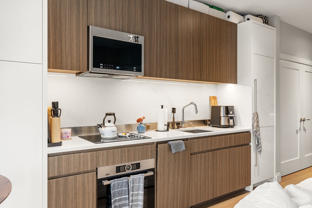 Take in charming south end views in this well-acquainted south facing, sundrenched Junior 1 Bedroom located in 100 Shawmut. Step inside to a thoughtful floor plan with 9 ft Ceilings and ample storage space including two custom closets. The kitchen features Bosch appliances with Miami white Silestone counters & backsplash and ample storage with expansive pantry. This residence also has a separate sleeping area with windows, featuring custom window treatments. 100 Shawmut is a full service building where you can enjoy the convenience of personal ultra-luxury concierge services, lobby lounge, great room, library, private dining room with entertaining kitchen, caterer's kitchen, activity lounge, billiards room, children's playroom, pet spa, fitness/wellness center, 3rd floor courtyard, rooftop sky lounge and The 100 Club equipped with gas grills and fire tables overlooking the Back Bay skyline-perfect for entertaining. The ideal way to enjoy a lifestyle of luxury in the South End.