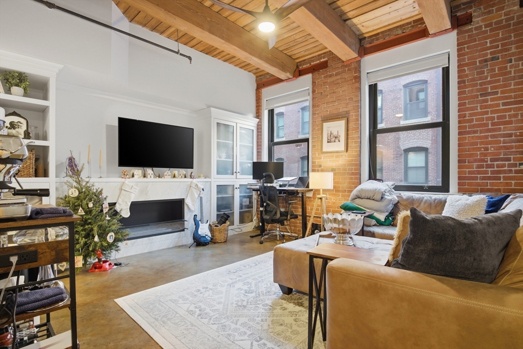 Available February 8, 2026! Stylish and spacious 1BR/1BA condo with exposed brick and beam construction and garage parking in the highly sought-after Court Square Press complex, located in one of South Boston’s most vibrant neighborhoods. This beautifully updated home features a modern kitchen with white cabinetry, stone countertops, stainless steel appliances, and gas cooking. The large bedroom offers a double closet, complemented by in-unit laundry and central A/C. Enjoy cozy evenings by the stunning honed Carrara fireplace, custom built-ins, and serene views of the landscaped courtyard.Court Square Press is a premier, full-service building offering 24/7 concierge, fitness center, media room, and a resort-style outdoor pool with terrace and grilling areas overlooking the Boston skyline. Ideally located directly across from the Broadway T and just steps to top restaurants, shops, fitness studios, and the South End—this is true urban living at its best.
