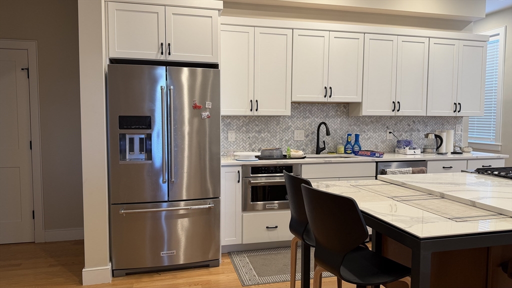 Welcome to this modern with one queen bed, one full size bed and other furniture in Condo, bult in 2022 located at central Cambridge near MIT and Harvard square. Stunning new construction luxury unit w/ central AC/Heat, BALCONY! and assigned parking at the back of the building. This unit is on the second floor and has solid maple hardwood floors throughout, bright, open layout with oversized windows. The kitchen has a gas stove and oven, stainless steel appliances and granite countertops. The living room has a gas fireplace to light your warm winters. One of the bedroom has a building in working table to allow you to setup your working environment at the home. This amazing 2 bed, 2 bath also has an in-unit washer/dryer!, storage room, bike storage and more. All you need is to bring your suitcase and move in this beautiful place