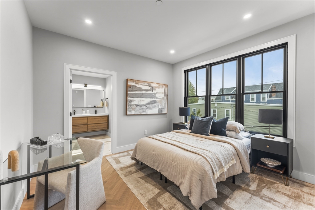This stunning new construction two bed PH features both a private roof deck and an additional private deck off the kitchen, ideal for entertaining or relaxing outdoors.The open-concept layout is enhanced by 9+ foot ceilings and herringbone-pattern engineered hardwood floors throughout. The designer kitchen showcases floor-to-ceiling shaker cabinetry, quartz countertops, a large center island, and premium stainless-steel appliances.The primary suite offers double closets and a spa-inspired en-suite bath with double vanity and a frameless glass shower. A generously sized guest bedroom and stylish second bath complete the interior. Additional highlights include central air, recessed lighting, tankless hot water, and in-unit washer and dryer.Perfectly positioned just one block from the beach and minutes from East Boston’s parks, restaurants, and transportation! One off street parking space!