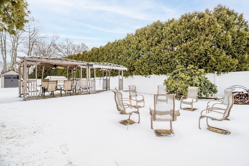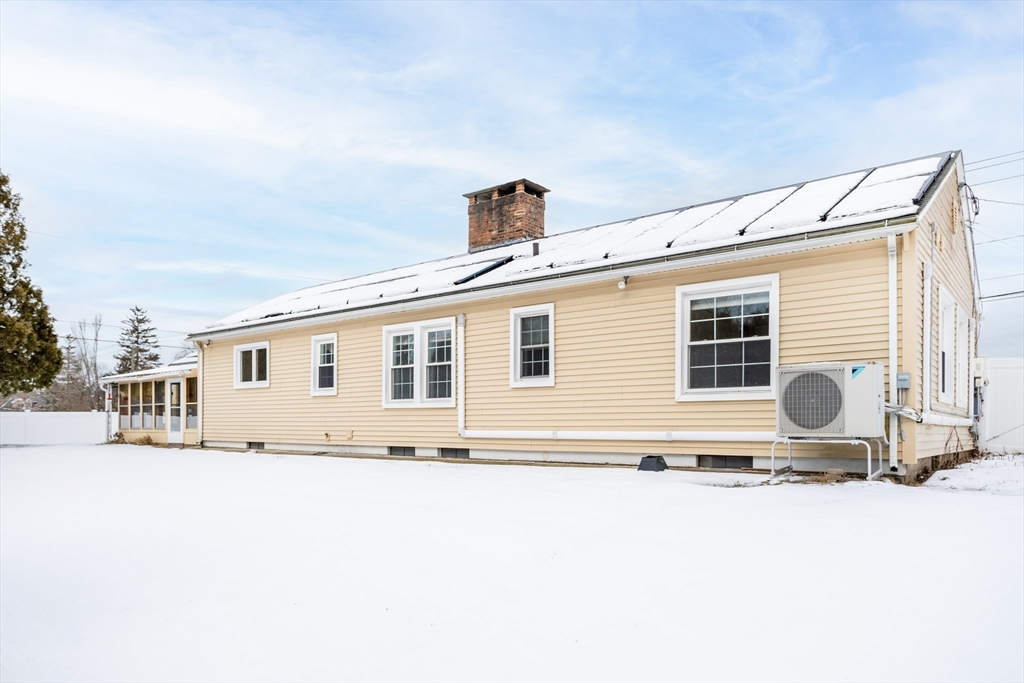 Live "on the hill" in Turners Falls! This meticulously maintained ranch style home– offers three bedrooms with one and a half baths, hardwood floors throughout. The cherry kitchen has ample storage, the separate dining room is open to the large living room with a wood burning fireplace, picture window and built ins. The breezeway from one car garage to kitchen gives access to the heated screen porch overlooking a covered patio, fire pit, in-ground swimming pool creating a comfortable environment for both relaxation and entertainment. The fully fenced backyard has gate access to the front yard and the neighborhood side street. Hobbyists will enjoy the three outdoor storage sheds and basement workshop. Low energy bills with owned solar and EV Car charger. Festive permanent soffit lighting trim the roofline. Home is across from Newt Guilbalt Community Baseball, Sheffield and Hillcrest Schools with easy access to Thomas Memorial golf course, public transit, a bike path and park.