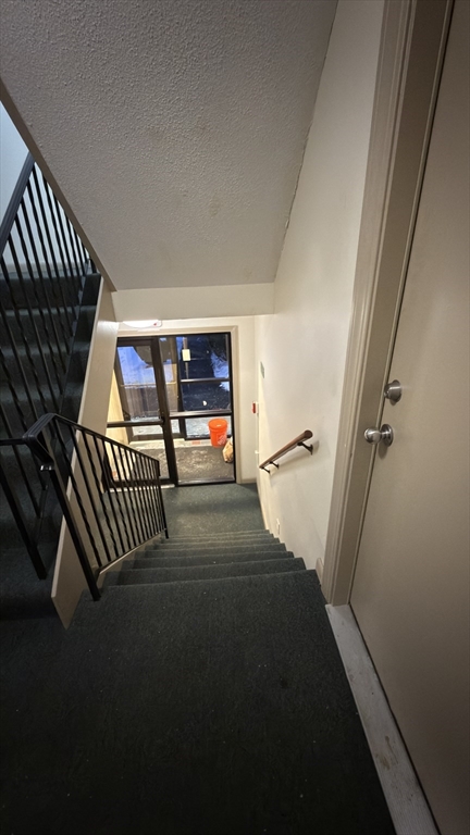 End-unit, two-bedroom garden-style condominium featuring a living room with a slider leading to a private balcony. The unit is accessed by 7 stairs and, as an end unit, is the first unit inside the building. The layout includes two bedrooms with closet space and an updated bathroom with tile flooring, vanity, countertop, and fixtures. The dine-in kitchen offers painted cabinetry and appliances. Laminate flooring is present throughout much of the unit. The condominium complex provides common-area laundry, storage space, picnic and playground areas including tennis courts. Assigned parking and visitor parking are available. The property is located within close proximity to the town center, local parks, municipal buildings, and community amenities, with convenient access to downtown Worcester.