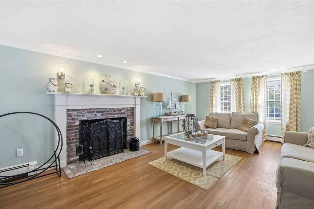 Welcome to this classic 4-bed, 2.5-bath Colonial ideally located in a desirable Duxbury neighborhood. This well-maintained home offers a functional and inviting floor plan designed for both everyday living and entertaining. The main level features an updated bright kitchen with ample cabinetry and workspace, opening to a comfortable family room with fireplace, along with a formal living room also featuring a fireplace and a dining room perfect for gatherings. A convenient half bath and laundry complete the first floor. Upstairs, you’ll find four bedrooms, including a primary suite with private bath, plus an additional full bath. Hardwood floors, abundant natural light, and thoughtful storage are found throughout. The finished basement adds valuable additional living space, offering a versatile great room ideal for a media room or gym, along with a separate office. Outdoors, enjoy a private beautifully landscaped backyard with patio, perfect for outside entertaining. Don't miss this one
