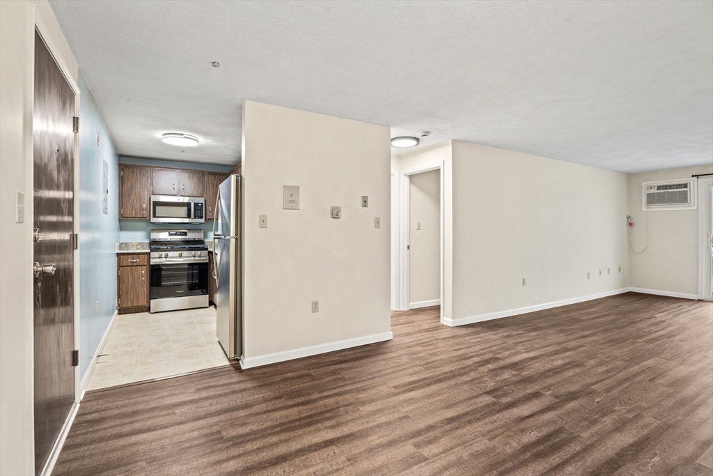 Welcome home to this sun-filled, top floor one-bedroom residence at Plaza Place, offering comfort, convenience, and true move-in-ready appeal. The spacious open-concept living and dining area is enhanced by brand-new flooring, natural light, and a sliding glass door that opens to a private balcony—ideal for relaxing or entertaining. The updated kitchen features all new appliances, elegant granite countertops, and ceramic tile flooring, delivering both style and functionality. The large bedroom also offers new flooring, while the updated bathroom includes granite counters and tile finishes. Freshly painted, the unit is complemented by updated LED lighting and a wall A/C for year-round comfort. Deeded parking, attic storage and conveniently located lower-level laundry add to everyday ease. Residents enjoy an inground pool, and the condo fee includes heat, gas, and hot water. Ideally located near major highways, LRTA, and just minutes from the town center, library, shopping, and dining.