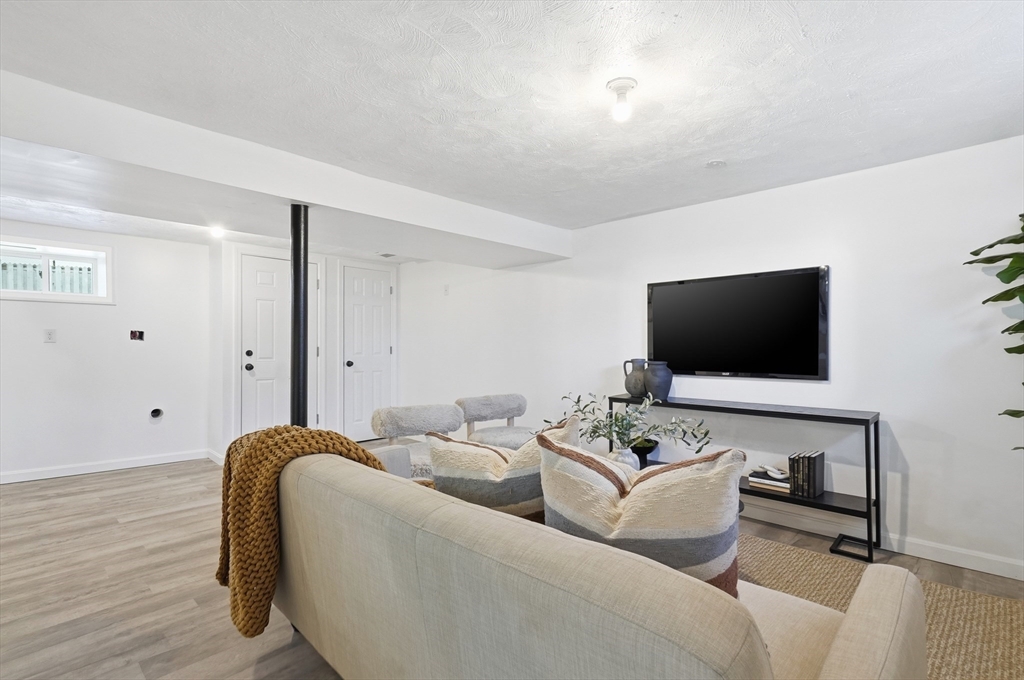 Enter to this sun-kissed, impeccably renovated Cape in a premier Watertown neighborhood. From the moment you enter the elegant living room, where gleaming hardwood floors & a stunning fireplace set the tone for refined living.The beautiful kitchen with the dual-tone cabinetry, quartz countertops, the chic stone backsplash, stainless steel appliances, and a seamless flow to the dining area with a convenient breakfast bar for effortless entertaining. A large, primary bedroom with rich hardwood floors & great natural sunlight; an additional 1st floor bedroom; full bath; and a warm, inviting sunroom that welcomes in natural light. Upstairs you find two good-sized bedrooms, ideal for family, guests, or a home office with an additional full bathroom. Furthermore, a spacious finished lower level that adds even more living space; perfect for a media room, home gym, or play area. Outside you have the garage, abundant off-street parking & a sprawling, level yard - perfect for summer gatherings!