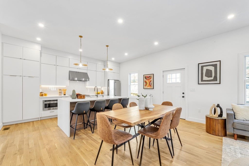 NEW CONSTRUCTION living in the heart of Roslindale Village with this stunning gut renovated tri-level townhouse. Featuring 4 spacious bedrooms and 2.5 baths, this home was completely redisgned by a seasoned developer and his architect/design team, offering a thoughtful layout perfect for today’s lifestyle. The open concept main level boasts high ceilings, abundant natural light, and a designer kitchen with premium finishes including custom cabinets, quartz counters and stylish fixtures that flows seamlessly into the dining and living areas with direct access to outdoor patio ideal for indoor/outdoor entertaining and everyday living.The primary suite includes a luxurious spa-influenced en-suite bath with heated floors and generous closet space, while additional bedrooms provide flexibility for family, guests, and a home office. Enjoy the convenience of being just steps to the Arboretum, Roslindale commuter rail, local restaurants, and one of the largest farmer's markets in the City