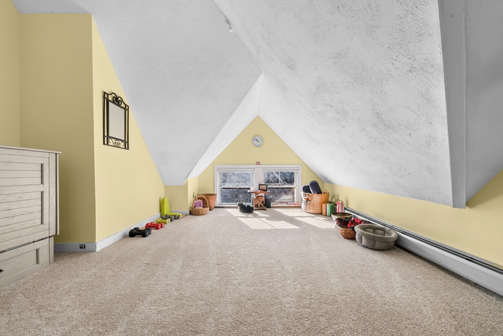Enjoy easy living in the heart of Amesbury just minutes from downtown shops, restaurants, parks, and commuter routes. Set on a quiet residential street, this light filled condo offers the perfect balance of convenience and neighborhood charm. The interior features a comfortable layout with high ceilings, flexible living and dining space, ideal for relaxing at home or hosting friends. A fully renovated bathroom adds a modern touch with updated finishes and fixtures, giving the home a fresh, move-in-ready feel. 2nd floor vaulted ceiling space doubles as a bedroom, office or retreat with more space for storage or to easily finish as an additional bathroom, office or walk in closet.Additional highlights include a dedicated storage unit in basement, low-maintenance living, and a location that makes everyday life easy. From morning coffee in downtown Amesbury to weekend strolls along the Merrimack River or quick access to Route 495 and nearby coastal towns. Showings begin at 1st Open House!