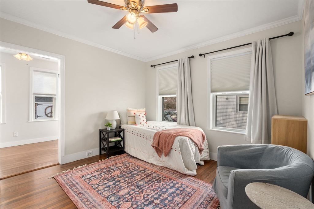 Incredible chance to own a stunning three-bedroom condominium in coveted East Watertown. Main level offers a spacious family room with fireplace and built-ins, two generous bedrooms—one with an adjoining office—and a large updated bath. A beautifully renovated open-concept chef’s kitchen with stainless appliances and granite counters (2021) completes this floor. Lower level features a finished room ideal for home office or gym. In unit laundry. Enjoy an exclusive fenced yard with new patio, garden space with raised beds and storage shed. Recent upgrades include roof (2020), gutters (2021), and replacement windows. Basement storage plus enclosed front porch entry with mudroom set up and ample storage. Stellar location with a walk score of 85- enjoy nearby Fresh Pond, shopping, and acclaimed dining in Watertown and Cambridge. Easy access to Boston, Harvard Square, Arsenal Yards, MBTA 73 and 71 bus, and major routes.