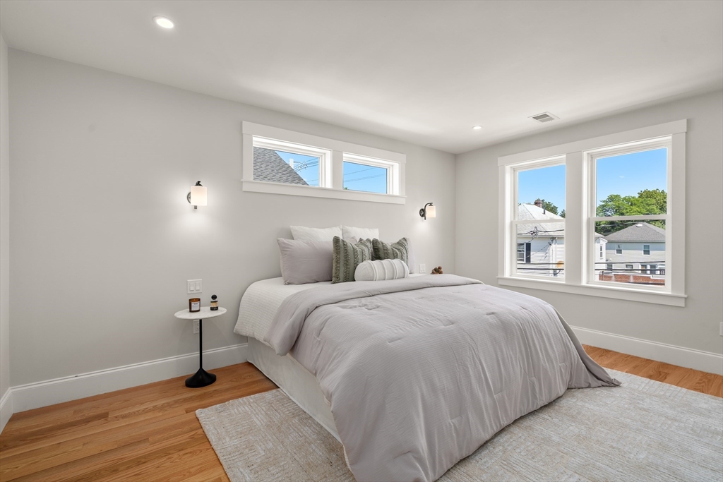 BRAND NEW CONSTRUCTION Single Family Home Conveniently located close to the Belmont/Cambridge line, High School, Middle School, Town Fields, Library, Hockey Rink, Commuter Train, Belmont Center, Alewife Red line Train, Whole foods, and Fresh Pond Golf Course and Reservoir. This home features 5 bedrooms, 4.5 baths across 4,660 sf of light filled living space. The open concept main level is ideal for entertaining, showcasing a chef's kitchen with custom walnut and white cabinets with quartz countertops and island. The adjacent family, dining and living areas are anchored by a gas fireplace and flow to a landscaped yard and patio. The primary bedroom on the second level offers a custom closet and beautiful primary bath. Two more bedrooms, bathroom and laundry complete the second floor. The third level offers a bedroom and office/den and full bath. There is also a finished lower level with a bedroom, full bath. and recreation room with a wet bar. Be part of Belmont's newest subdivision.