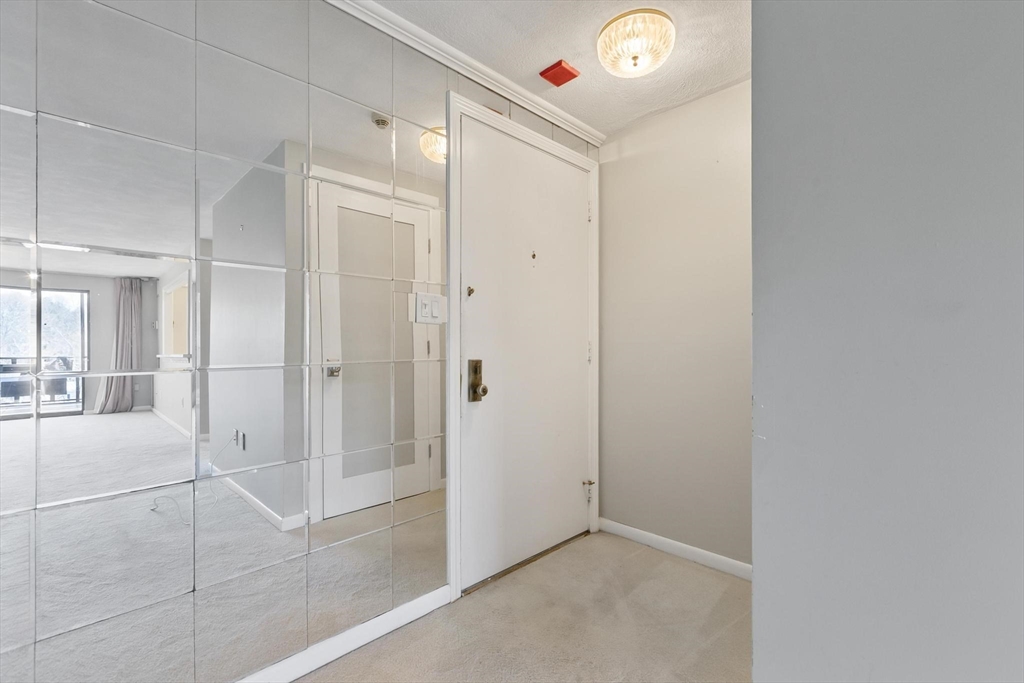 Love it! The Kentwood, a sought-after elevator building offering easy, turnkey living in the heart of Arlington. This quiet, sun-filled 1BR,1.5BA residence is ideally positioned on the 8th floor and offers 840SF thoughtfully designed living space with sweeping views.The open living and dining area is filled with natural light and opens through a glass slider to a private, enclosed balcony overlooking the association pool—perfect for relaxing or entertaining.The fully applianced kitchen provides ample cabinetry and prep space, while a convenient half bath serves guests.The primary bedroom is a peaceful retreat with a walk-in closet and en-suite bath featuring a walk-in shower. Additional highlights include central air, garage parking, laundry facilities and private storage unit. Building amenities include a roof deck, community room, exercise room, exercise room, pool, professional management. Nearby shops, dining, the Bikeway, highways and public transportation. Offers Due 1/13 at 10a
