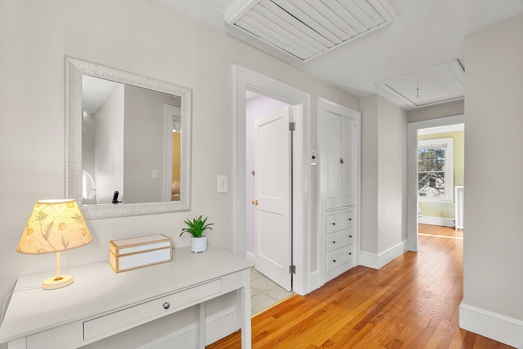 Move right in to this beautifully maintained 3-bedroom, 1.5-bath Colonial set in a well-established sidewalk-lined Wakefield neighborhood! You'll especially love the hardwood flooring throughout; the fireplaced living room; cozy year-round sunroom; formal dining space; and kitchen with stainless appliances, stone counters & built-in desk area; & direct deck access for outdoor private dining. Upstairs, the wide landing leads to three bedrooms & a full bath. Plenty of closet space! Additional features include first floor laundry, a detached garage, nicely paved driveway, backyard patio, and plenty of storage in the attic and unfinished basement. Close to cafes and restaurants! Open Houses Sat 1/10 12-3 PM & Sun 1/11 12-2 PM. Offers, if any, due Tues Jan 13th 12pm. Please allow 24 hours response time. Roof is 3 years old. Heating system is approx 13 years old.