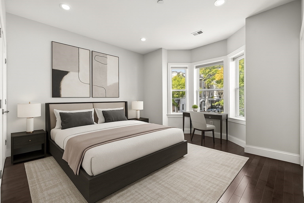 Prime Eagle Hill location in the heart of East Boston (and across from the famous Rino's Place). A beautifully maintained 2bed/2bath condo (built in 2019) with open layout and private deck. Featuring a stunning chef's kitchen with large island, wine fridge, and stainless steel appliances. Just off the kitchen access your private back deck, ideal for entertaining guests or relaxing on a nice day. The Primary bedroom showcases an inviting bay window ideal for work large double-door closet, and en suite "spa like" bathroom with double vanity and walk-in shower. The split bedroom layout is ideal for hosting guests and/or having a home office. The 2nd bedroom is equipped with a large closet, and the guest bathroom is complete with soaking tub and laundry (side-by-side washer/dryer).