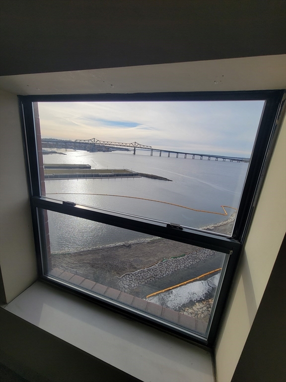 WATERFRONT RENTAL.Breath taking water views and sunsets from this 8th floor corner unit with a spacious deck. 2 large bedrooms with ample closet space. 2 full bathrooms (1 with stand up, walk-in shower) quartz kitchen is fully applianced. Private parking in secured garage. This waterfront property with boardwalk access is across from the commuter rail to Boston. Heat and Hot water are included as well as an exercise area for enthusiasts.