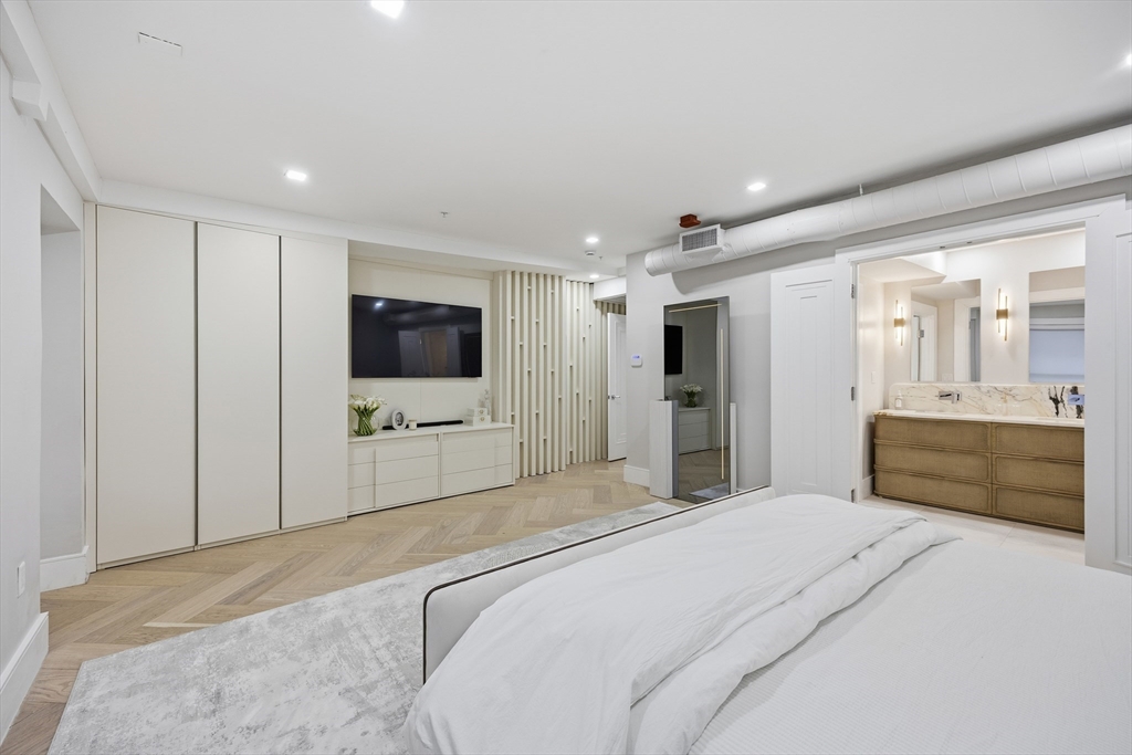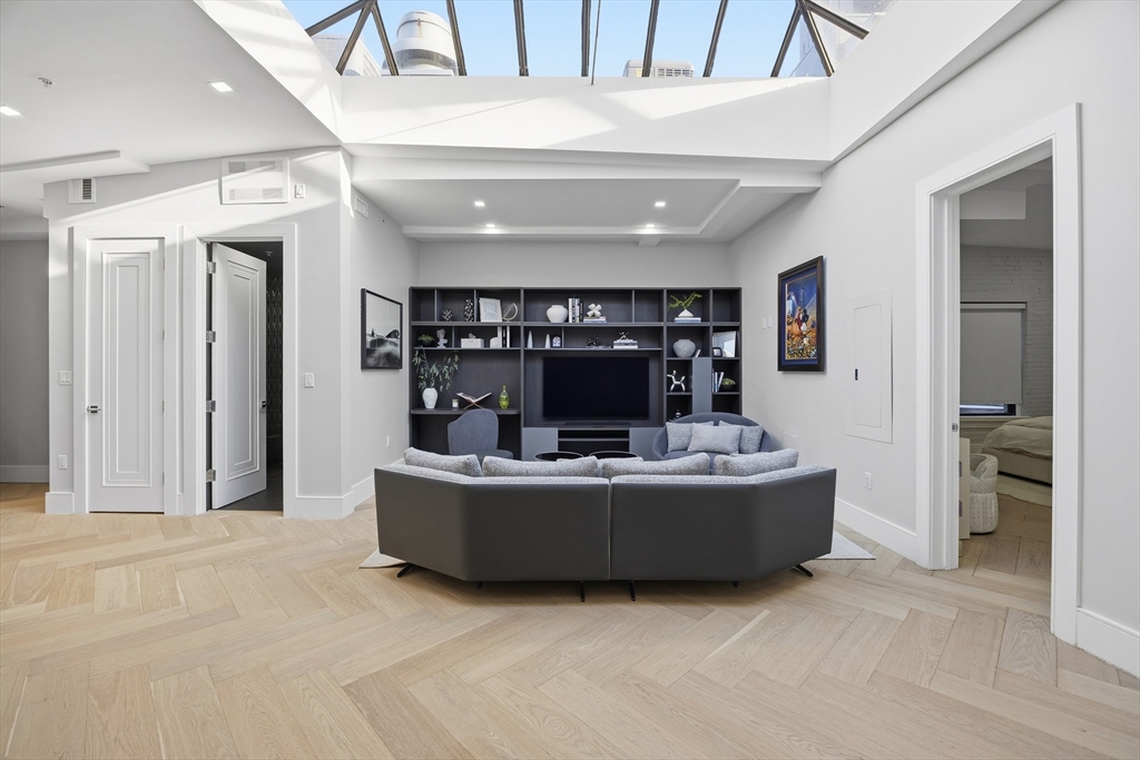 Experience turnkey penthouse living in this brand-new, custom-built and fully furnished 3,000-square-foot loft residence in Boston’s sought-after Waterfront/Financial District. Designed for discerning renters, this 3-bedroom, 3.5-bath home offers exceptional scale, privacy, and luxury, complete with valet parking and direct elevator access. The dramatic open living space features soaring ceilings, oversized windows with city and water views, elegant herringbone hardwood floors, and refined finishes throughout. The chef’s kitchen is a true centerpiece, highlighted by a grand skylight above a custom-designed kitchen, high-end appliances, bespoke cabinetry, and a generous island ideal for entertaining. The expansive primary suite offers a spa-inspired ensuite bath and ample closet space, while two additional bedrooms each feature private ensuite bathrooms—perfect for guests, family, or a home office. Additional highlights include in-unit laundry and valet parking across the street.