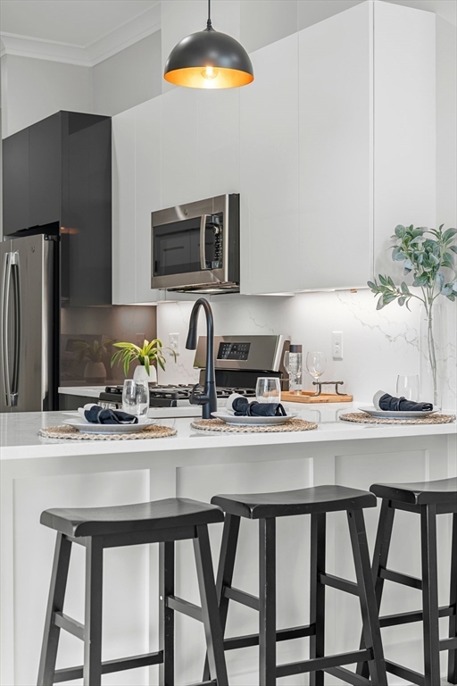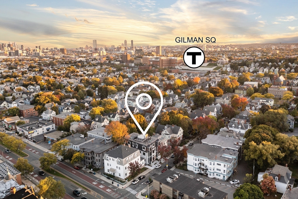 Less than a half to the Green Line! FANTASTIC NEW CONSTRUCTION WITH HUGE EXCLUSIVE USE ROOF DECK AND STUNNING PANORAMIC VIEWS OF BOSTON... Also includes RARE EXCLUSIVE GARAGE PARKING SPOT. Fantastic quality, incredible value... Stunning Sun Splashed Luxurious top flr unit w/ 9 ft clngs, skylight & custom panneled walls. Wide plank dirty blond flrs. Kitchen has new stainless appliances with quartz brkfst islnd. Fantastic Primary Bedroom with double sliders to a faux balcony, BIG gorgeous double basin luxury bathroom and great closet space. In Unit Laundry. Full EXCLUSIVE FULL WALK UP to a huge 19 ft awesome roof deck with breathtaking Boston and hillside views. Beautiful common areas with big brick rear patio and bike rack. GREAT Winter Hill location. Walker's Paradise Walk Score of 90. GREAT FINANCING available with a start rate of 3.5% in Year 1 with no points... ask listing agent for more details!