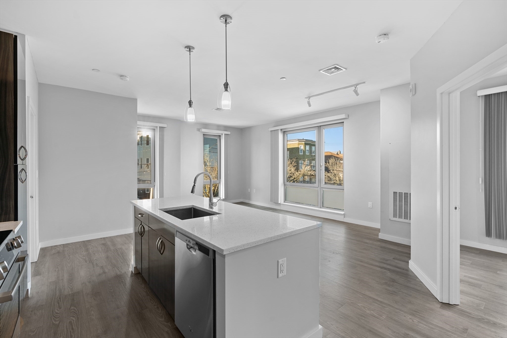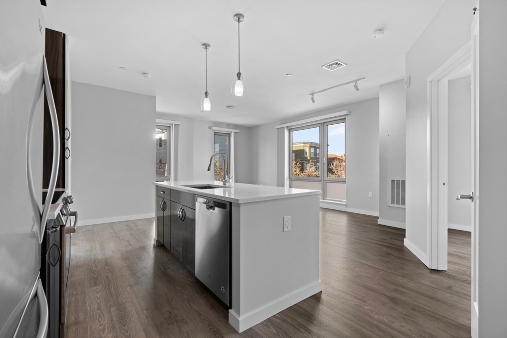 Beautifully built and maintained 1 bed, 1 bath unit available in the luxurious Sphere! Central AC, hardwood floors throughout, in-unit laundry AND updated appliances. The building has a state of the art fitness center, bike storage, and a roof top city lounge with 2 large roof tops decks!! Uncovered parking ($75 a month) and covered parking ($150 a month) available. The building is pet friendly with breed restrictions. Great Location on Boston Ave just steps from Tufts University and Ball Square. Walk to bus. *Photos shown are from a similar unit to highlight the interior finishes and details.*